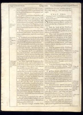 1612 KING JAMES ROMAN LETTER 1ST EDITION BIBLE LEAF/RARE/KING SAUL WITH WITCH!