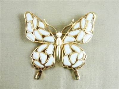Title (ebay affiliate link): Beautiful Old Crown Trifari Mosaic Milk Glass Butterfly Brooch