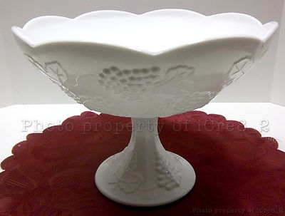 Title (ebay affiliate link): Vintage Indiana 'Harvest Grape' Large 10" Wide White Milk Glass Compote