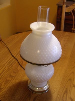 VINTAGE FENTON WHITE MILK GLASS HOBNAIL HURRICAIN LAMP