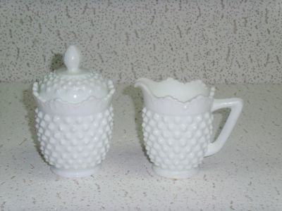 FENTON MILK GLASS HOBNAIL SUGAR BOWL & CREAMER