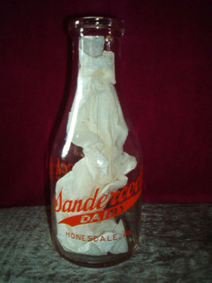 Title (ebay affiliate link): Vintage Sandercock Dairy Honesdale Pa Round Glass Milk Bottle Cow Farm Collect