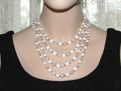 Title (ebay affiliate link): Vintage Western Germany 3 Strand Milk & Frosted Glass Various Size Bead Necklace