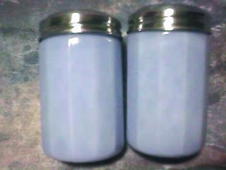 Title (ebay affiliate link): DELPHITE BLUE MILK GLASS RIBBED SALT & PEPPER SHAKERS SET S&P