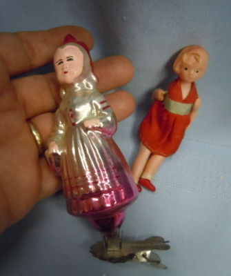 OLD RARE Composition Faced Mercury Glass Child Clip on Christmas Ornaments
