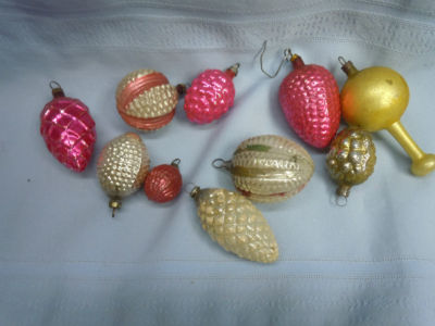 10 OLD Early Christmas Ornaments Glass