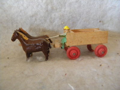 Title (ebay affiliate link): VINTAGE GERMAN ERZGEBIRGE WOOD PENNY TOY HORSE DRAWN CART