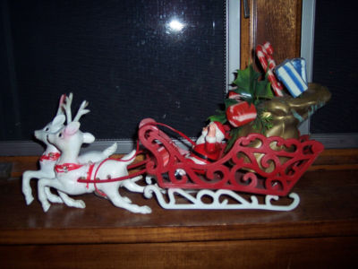 VINTAGE SANTA IN SLEIGH WITH REINDEER - PLASTIC