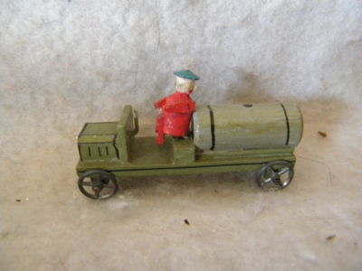 VINTAGE GERMAN ERZGEBIRGE WOOD PENNY TOY WATER TANK TRUCK