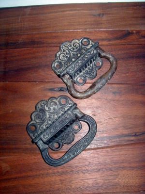 Vintage trunk handles, Cast iron, Eastlake, 2 part sets