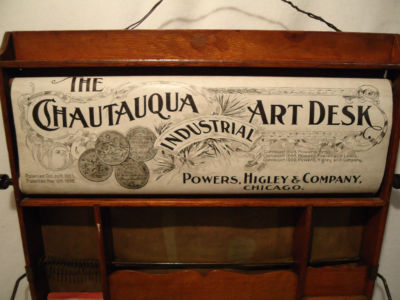Title (ebay affiliate link): Primitive Child's Chautauqua Industrial Art Desk Scroll ~~Early Home School~~