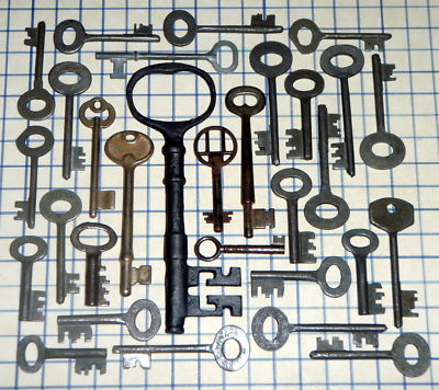 Antique Vintage old skeleton key lot furniture cabinet barrel padlock lock craft