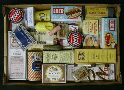 Title (ebay affiliate link): Vintage Box Lot of Advertising Tins, Containers, Novelties, Bags All New Old