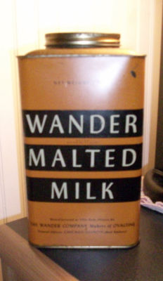 Title (ebay affiliate link): VINTAGE WANDER Malted Milk 5 lb.tin Makers of Ovaltine Soda Fountain Can