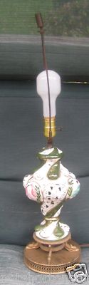 Title (ebay affiliate link): Vintage Capodimonte Porcelain Lamp Green and Ivory w Gold pointing &pedestal