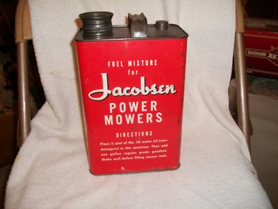 Title (ebay affiliate link): Vintage Jacobsen Power Mowers Gal Tin Can Tractors Gas can