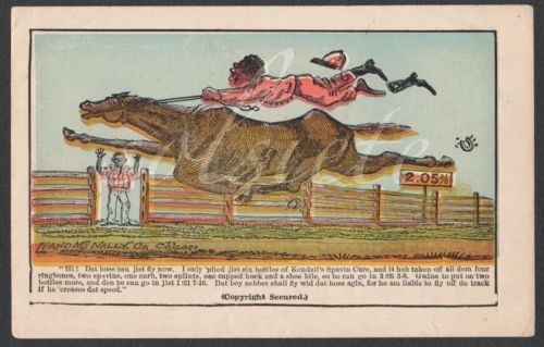 Title (ebay affiliate link): AFRICAN AMERICAN Groom UNWILLINGLY Exercises Race HORSE; KENDALL'S SPAVIN CURE
