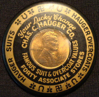 Title (ebay affiliate link): VINTAGE 1926 ENCASED LUCKY PENNY MIRROR CHAS HAUGER SUITS OVERCOATS CELLULOID NR