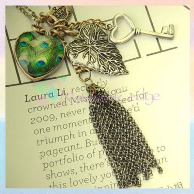Title (ebay affiliate link): Vintage Peacock Leaf Key Heart Pendant Fringe Tassel Necklace Chain Gift
