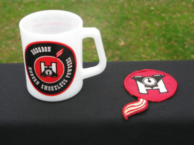 VTG HODGDON SMOKELESS RELOADING GUN POWDER FEDERAL GLASS COFFEE CUP MUG & PATCH