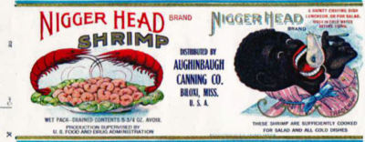 LABEL NIGGER HEAD SHRIMP BLACK MAN EATING SHRIMP PRINTED AUGINBAUGH CANNING CO