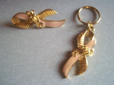 Vintage Avon Pink Ribbon & Rose Pin & key chain