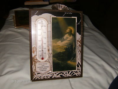 VINTAGE ADVERTISING THERMOMETER W/ CHRIST PICTURE