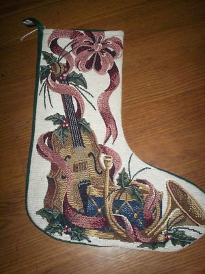 PRETTY TAPESTRIE CHRISTMAS STOCKING VIOLIN