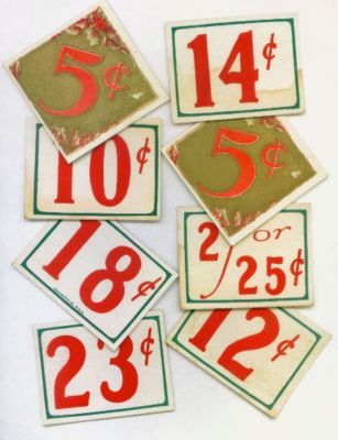Title (ebay affiliate link): 8 VINTAGE LIL' 2 3/4" & 3 1/8" CENTS CHRISTMAS PRICE TAG SIGNS