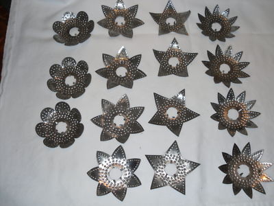 15 VINTAGE PUNCHED TIN CHRISTMAS LIGHT RELFECTORS STARS FLOWERS