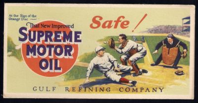 VINTAGE GULF SUPREME MOTOR OIL BASEBALL THEME INK BLOTTER