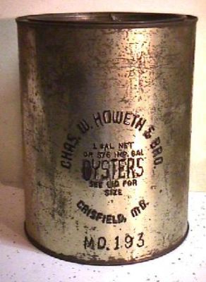 GAL CHAS. W. HOWETH & BRO. OYSTERS TIN OYSTER CAN CRISFIELD MD 193 MARYLAND