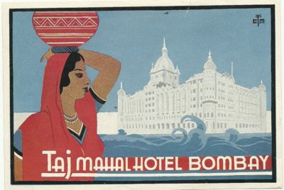 HOTEL TAJ MAHAL luggage DECO label (BOMBAY)