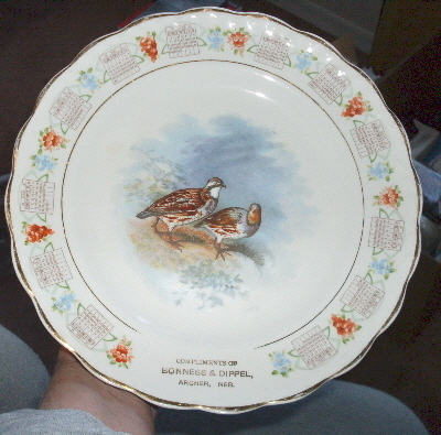 1914 Archer Nebraska Souvenir China Calendar Plate