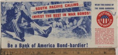 Title (ebay affiliate link): 1943 Bank of America Victory Bond-Bardier Ink Blotter South Pacific Calling