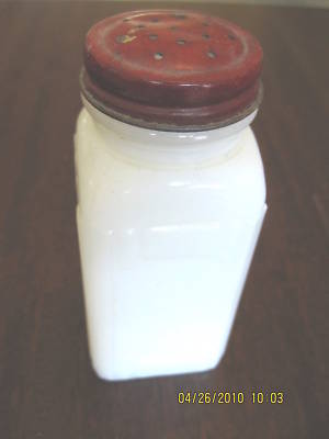 VINTAGE RED METAL LID MILK GLASS SALT OR PEPPER SHAKER