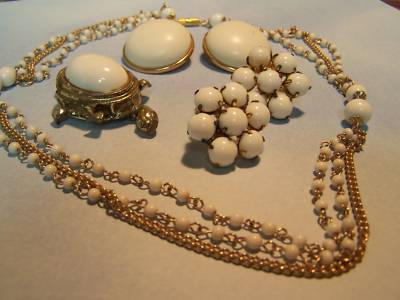 NICE VINTAGE MILK GLASS JEWELLERY PAIR SIGNED EARRING