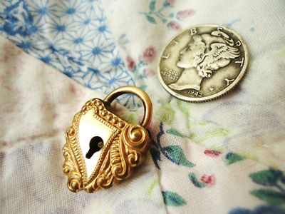 Title (ebay affiliate link): ORNATE ANTIQUE VICTORIAN GOLD FILLED HEART PADLOCK CHARM NO KEY