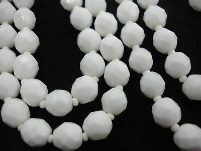 Vintage OLD White Milk Glass Bead Flapper Necklace 48"