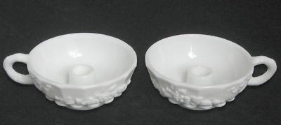 WESTMORELAND PANELED GRAPE MILK GLASS CANDLE HLRS 2