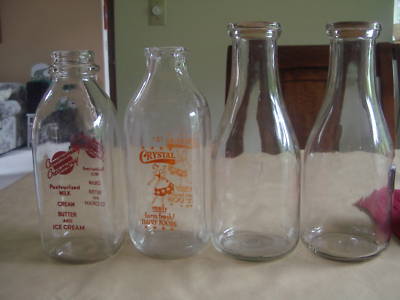 4 Vintage Milk Bottles Old