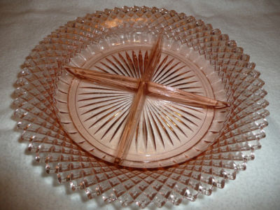 Title (ebay affiliate link): Anchor Hocking Miss America Pink Depression Glass Divided Dish, 9 In diam, Mint