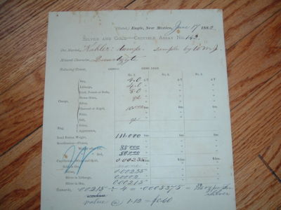 1882 Old West Mining "GOLD/SILVER,handwritten in New Mexico"GHOST TOWN,document!