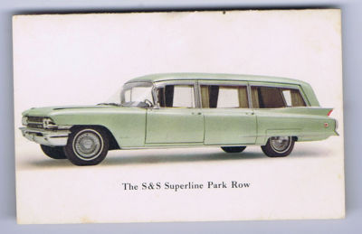 1962 S & S Cadillac Park Row hearse ambulance business card