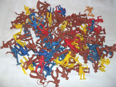 Title (ebay affiliate link): VTG MID CENTURY MODERN 135+ PLASTIC COWBOYS & INDIANS Marx MPC