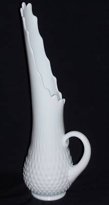 LARGE 17 1/2" FENTON MILK GLASS EWER SHAPE HANDLED VASE