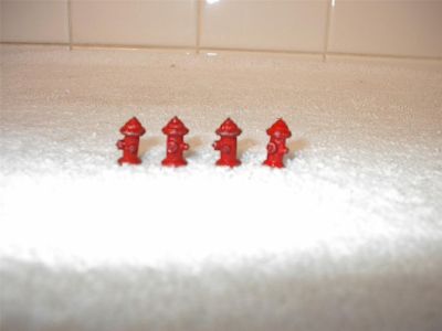 LOT 4 VINTAGE RED FIRE HYDRANTS LEAD METAL MINATOY BRITIANS TRAIN DOLLHOUSE TOY