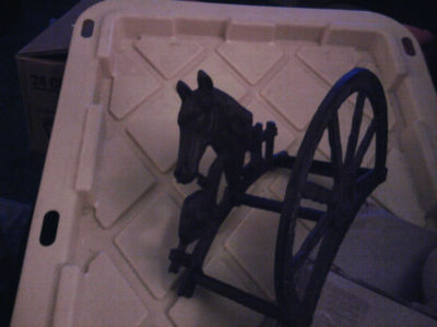 HORSE WITH WAGON WHEEL WATER HOSE HOLDER
