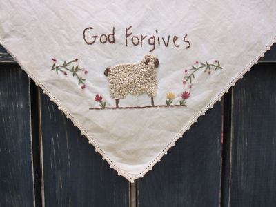 ~Awesome~ Primitive "GOD FORGIVES" Doily !! So Sweet! SALE!!!!!