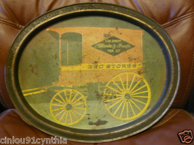 Title (ebay affiliate link): Antique Tin platter from "The great Atlantic&Pacific Tea company" oval 14&1/2 "